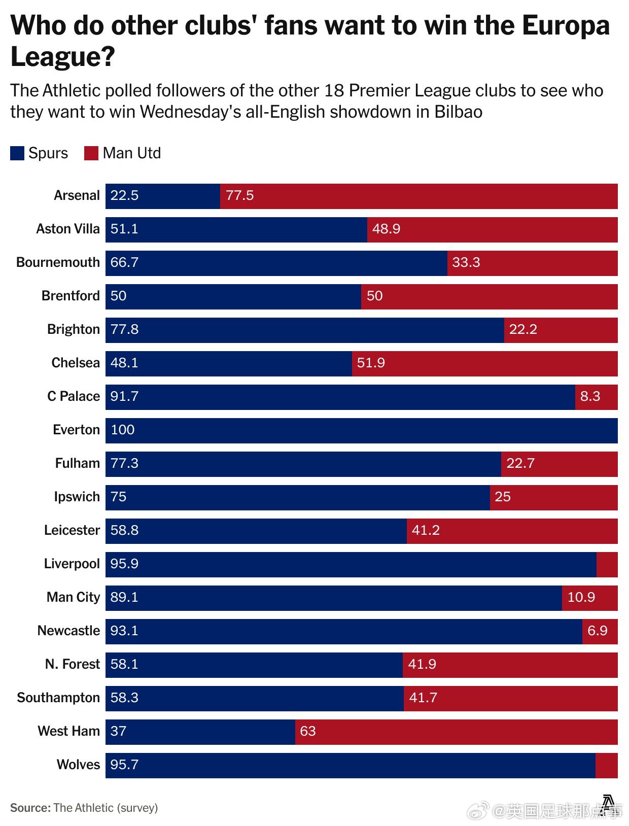 吃瓜群眾英超其余18隊(duì)球迷投票歐聯(lián)決賽:超6成希望熱刺獲勝