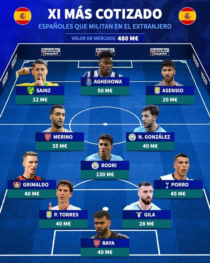 在海外踢球的西班牙球員最貴陣容:羅德里1.3億歐元領(lǐng)銜