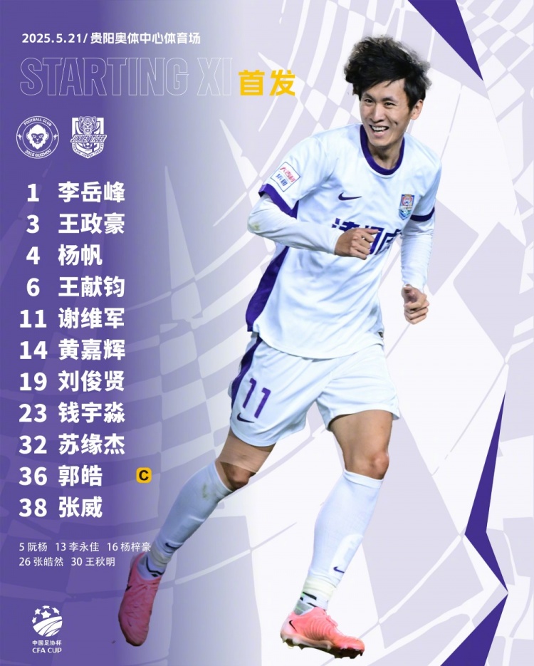 足協(xié)杯對(duì)陣貴州筑城競(jìng)技,天津津門虎首發(fā)