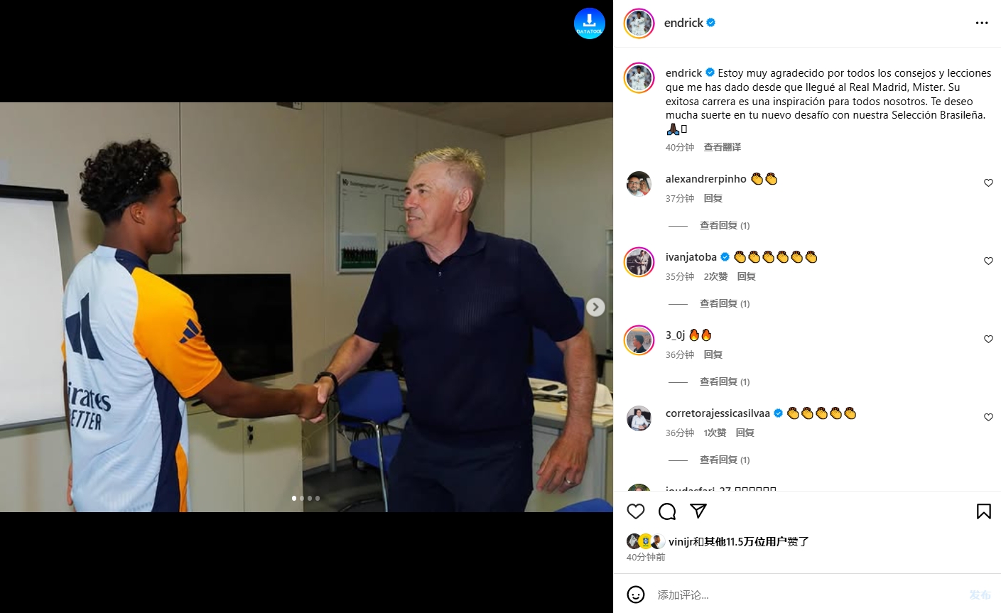 恩德里克告別安切洛蒂:祝愿您在巴西隊(duì)的新挑戰(zhàn)一切順利