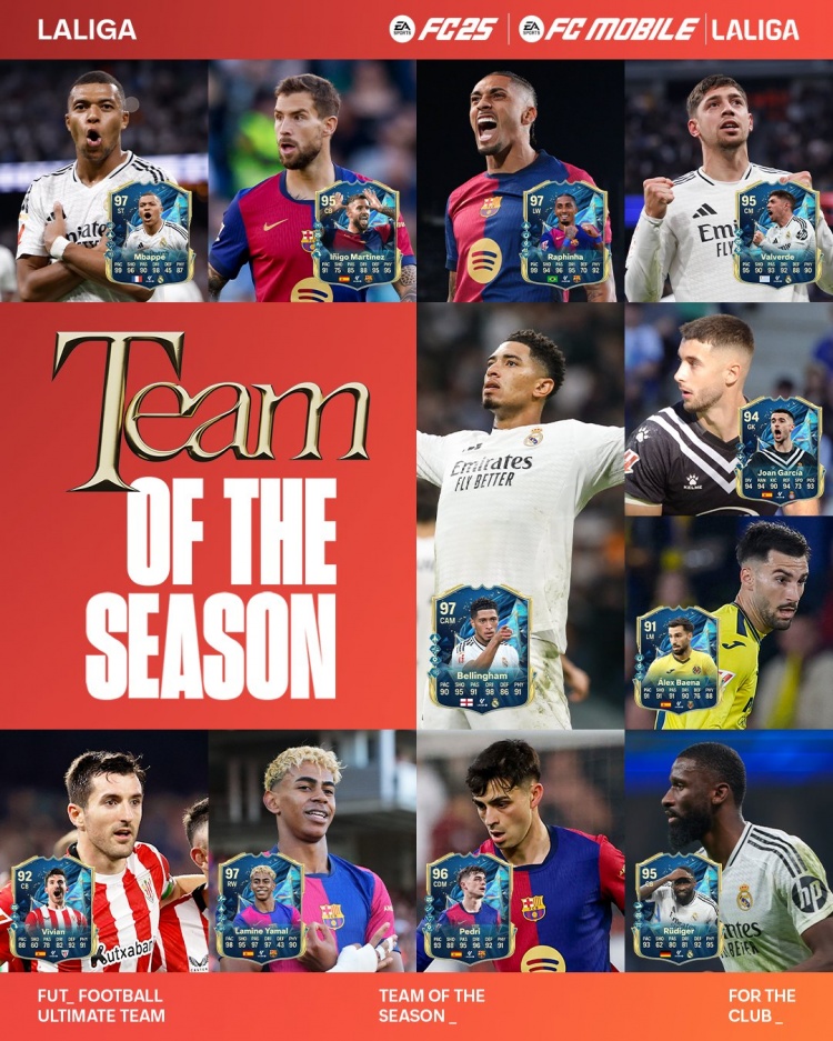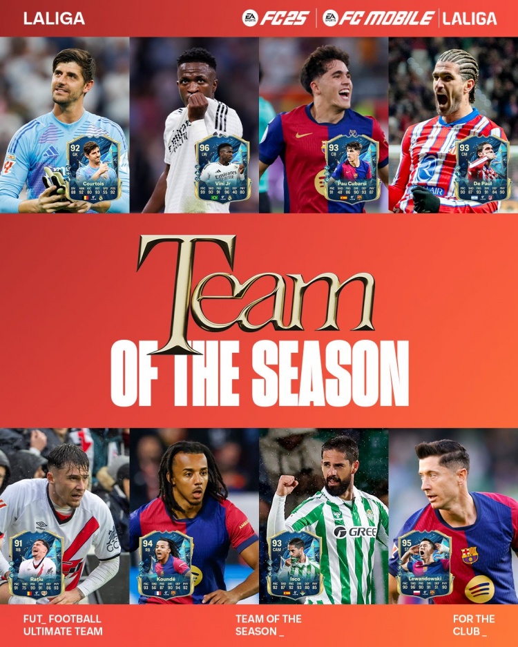 - FC25西甲賽季最佳陣:皇馬6人巴薩7人,伊斯科、德保羅在列