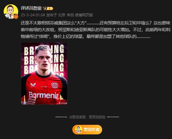- 詹俊談維爾茨:不敢信芬威這么大方,努涅斯迪亞斯離隊(duì)可能性增加